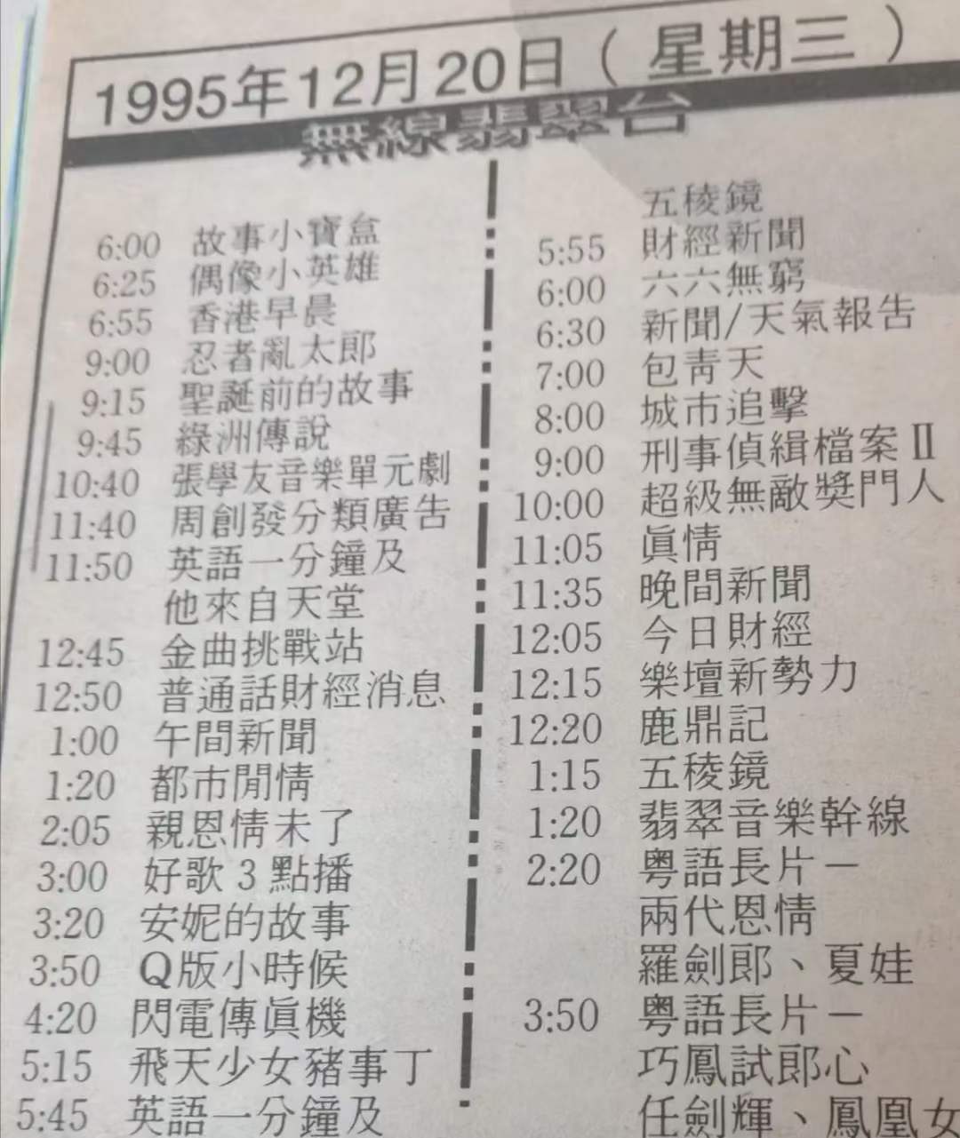 1995年聖誕季報刊中的無線電視節目表,當年嘅節目每個都係精品
